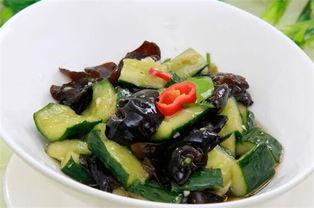 木耳炒黄瓜:黄瓜的清甜与木耳的鲜美相得益彰,是一道简单又美味的家常菜。