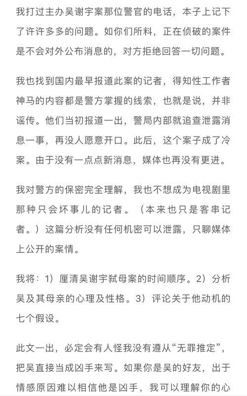 最近网上可是热闹非凡呢!吴谢宇这个名字,估计很多人都已经如雷贯耳了吧。这不,吃瓜群众们纷纷上线,从各个角度剖析这位“天才”的种种行为。今天,就让我带你一起,从多角度来聊聊这个话题。