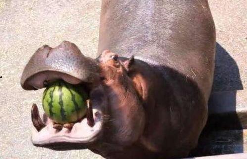 一、河马吃瓜,萌态十足